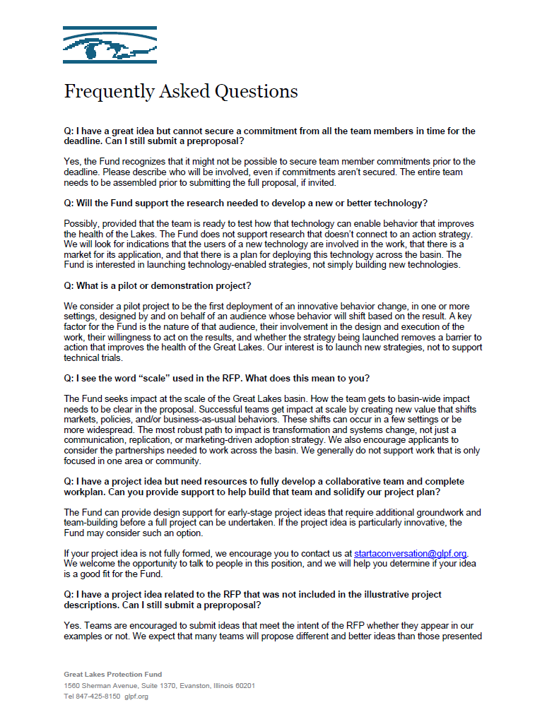 If you are interested in working with the Fund outside the scope of this RFP—either to discuss a future project idea or to collaborate— please email us at  startaconversation@glpf.org.