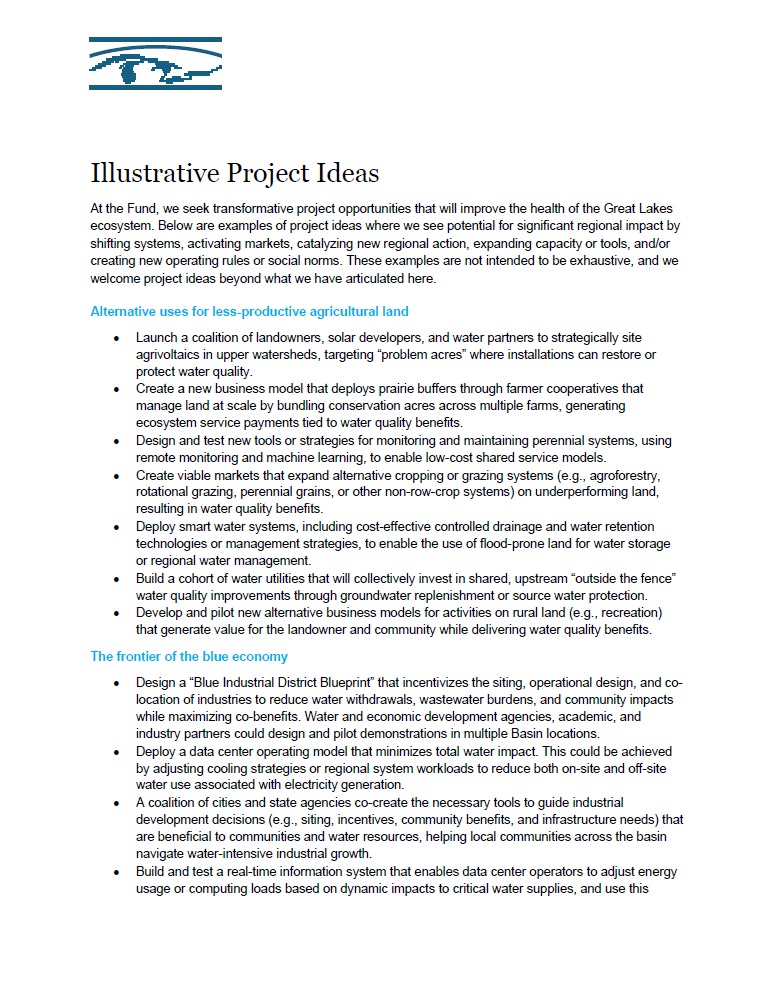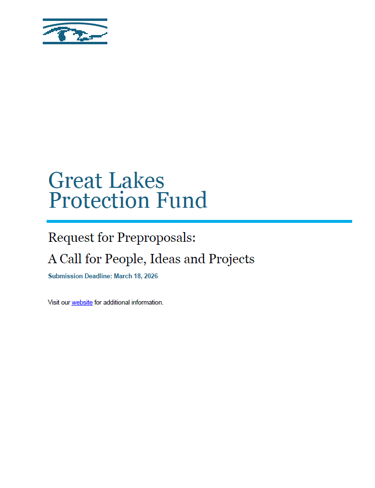 The Great Lakes Protection Fund is excited to announce our 2026 Request for Preproposals (RFP): A Call for People, Ideas, and Projects! We’re looking for projects that will launch new building blocks for the future of our region’s water use, improving our waters, communities, and economies. The Fund is seeking to invest $4M in new project activity in 2026.